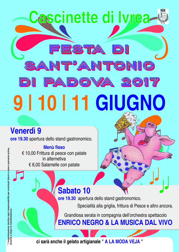 DA VENERDI' 9 GIUGNO A DOMENICA 11 GIUGNO 2017 FESTA PATRONALE DI SANT'ANTONIO DA PADOVA