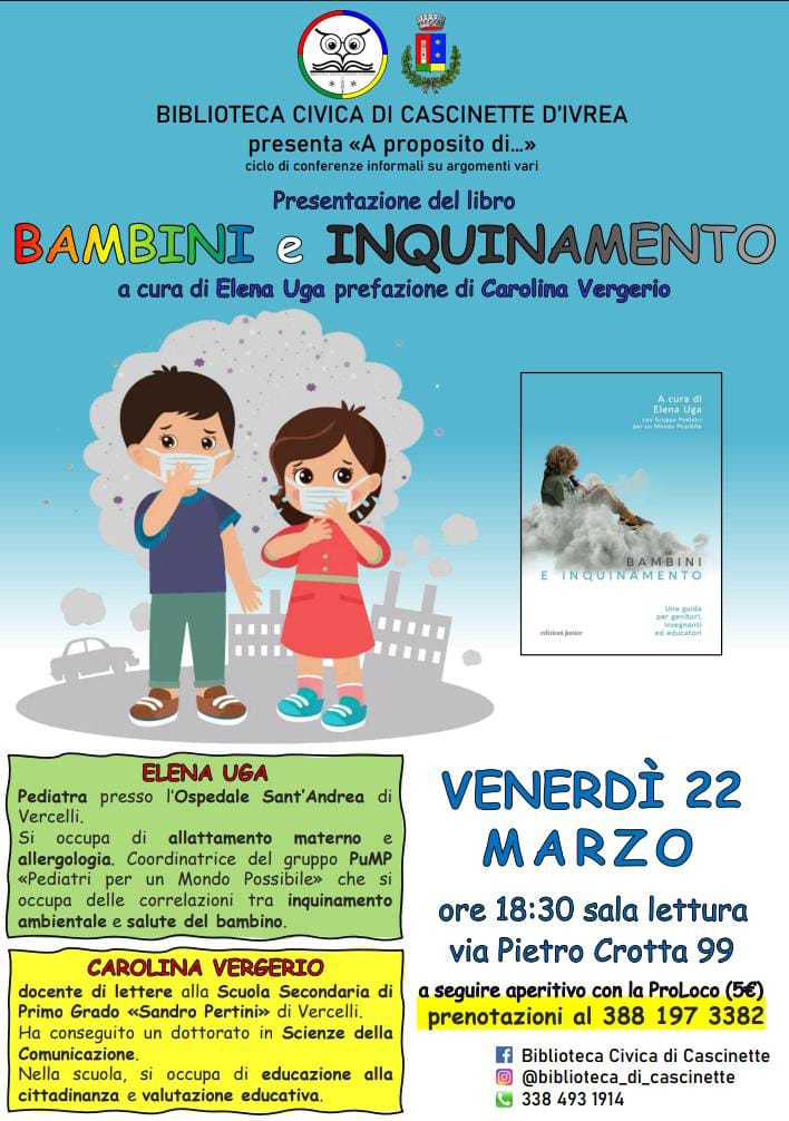 Venerdì 22 marzo 2024 alle ore 18,30 presso la Sala Lettura presentazione del libro "Bambini e inquinamento"