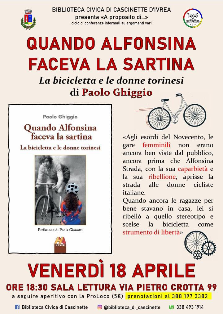 Venerdì 18 aprile c.a. alle ore 18,30 c/o la Sala Lettura presentazione del Libro: "Quando Alfonsina faceva la sartina" dell'autore Paolo Ghiggio.