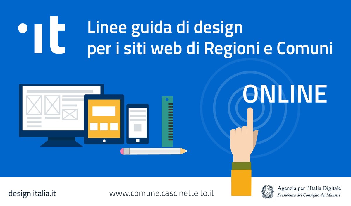 Da oggi è on line il nuovo sito web del Comune di Cascinette d'Ivrea realizzato secondo le Linee Guida di design per i siti web della PA.