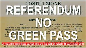 S'informa tutta la cittadinanza che sono disponibili fino al 20.10.2021 i moduli per la raccolta firme, inerenti la sottoscrizione dei quesiti referendari promossi dal Comitato Referendum "No Green Pass".