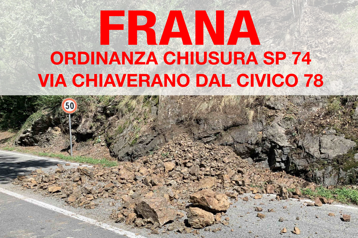 a seguito della frana di questa mattina su Via Chiaverano a Cascinette, ho emesso un'ordinanza di chiusura al traffico veicolare e pedonale nel tratto compreso tra via Chiaverano 78 a Cascinette d’Ivrea e il bivio tra SP74 e via Casale Rovera del Comune di Chiaverano.