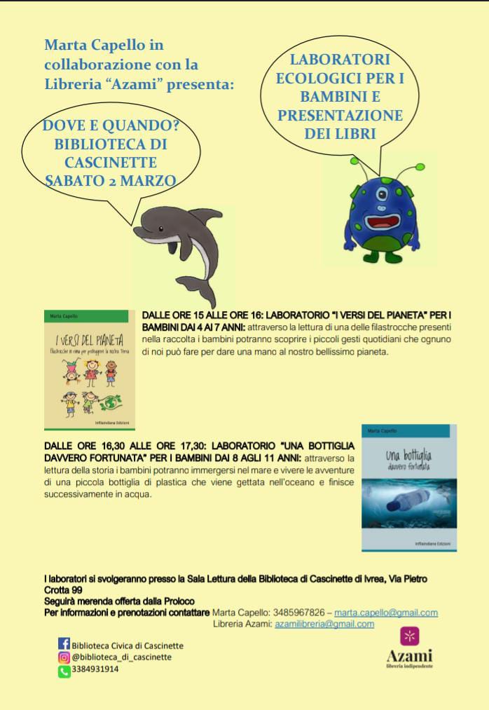 Sabato 2 marzo 2024 dalle ore 15,00 presso la Sala Lettura si terranno laboratori per bambini di età compresa tra i 4 e gli 11 anni come da locandina allegata.